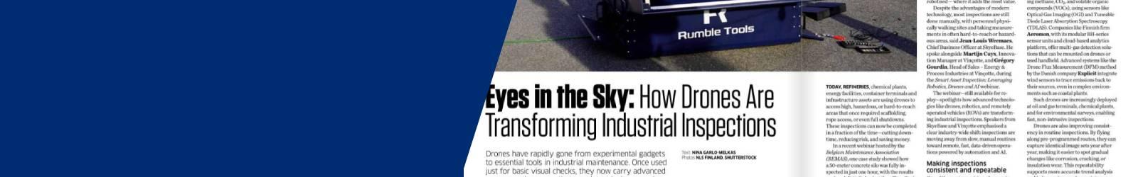 In de nieuwste uitgave (nummer 4/2025) delen Jean-Louis Weemaes van SkyeBase en onze eigen Innovation Manager, Martijn Cuyx, hun visie op de toekomst van inspecties. Het artikel gaat dieper in op hoe het gebruik van drones de industriële inspecties transformeert: denk aan verhoogde veiligheid, verbeterde efficiëntie en ongeëvenaarde datakwaliteit.
